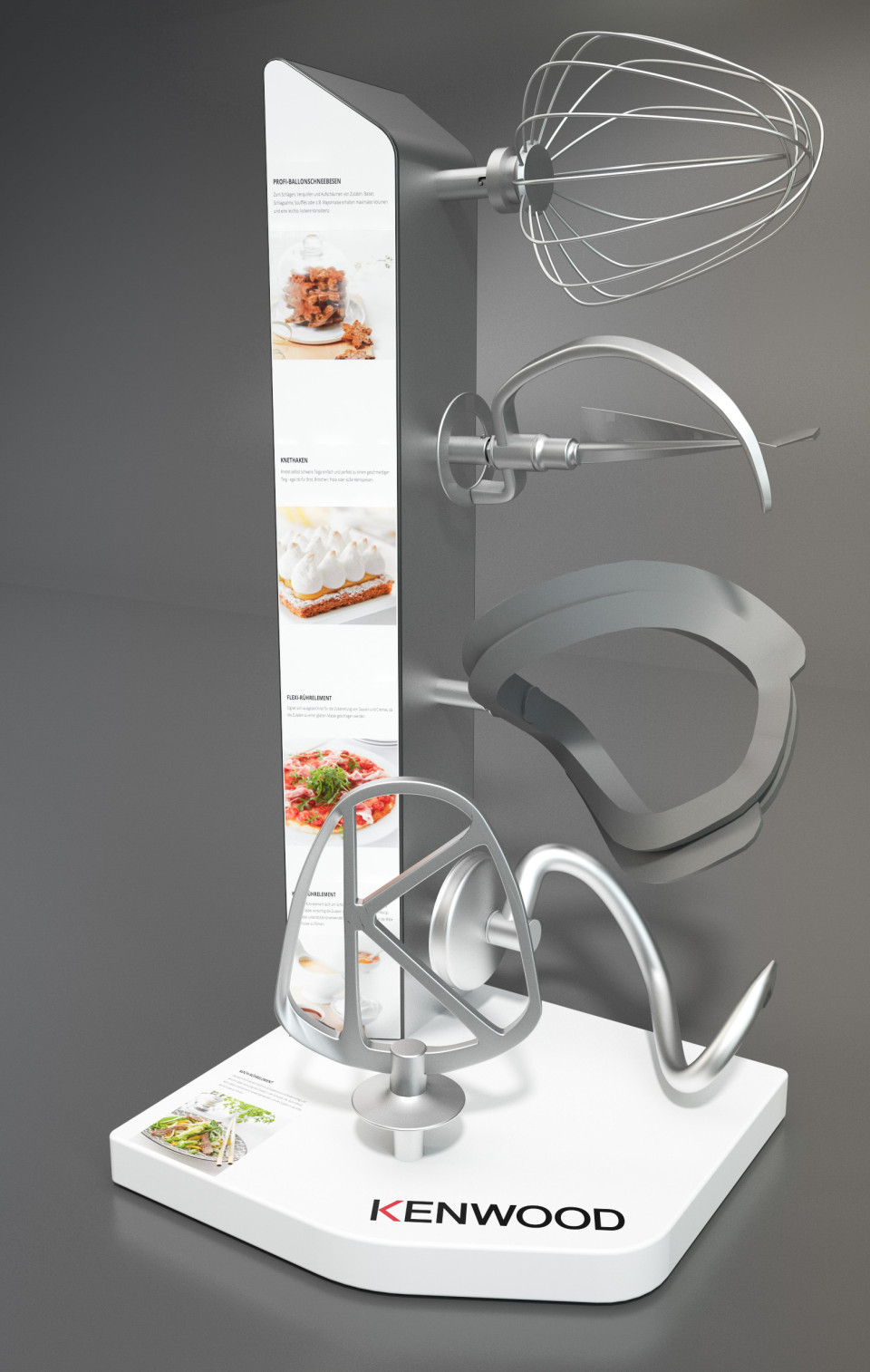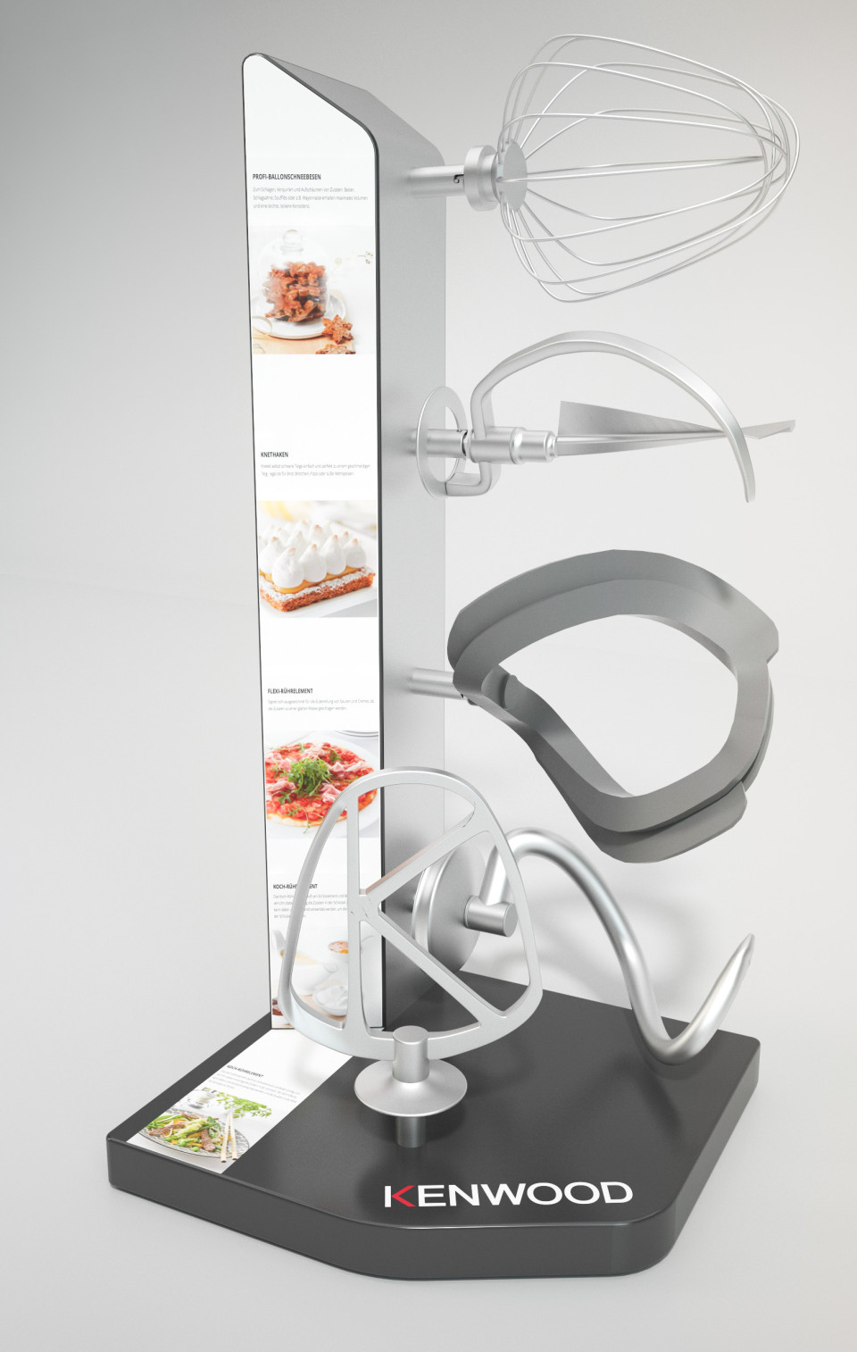 Mit dieser Visualisierung unterstützten wir die Entwicklung eins Thekenstellers für Küchenmaschinen-Aufsätze.
